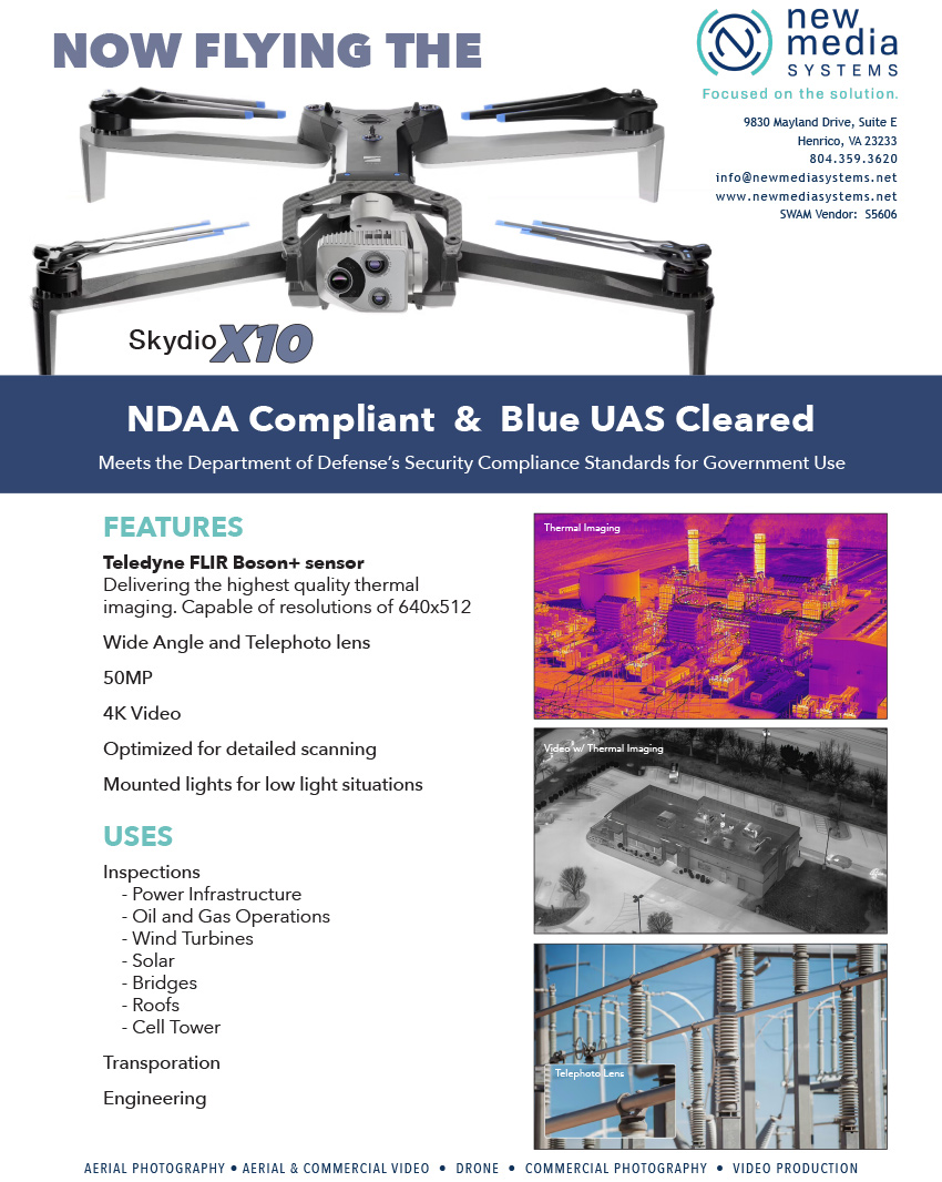 The Skydio X10 is a cutting-edge drone designed for a range of industrial applications, offering exceptional advanced flight capabilities. The X10 is NDAA Compliant, Blue UAS Cleared, Made in the United States and meets the Department of Defense’s security compliance standards for government use.